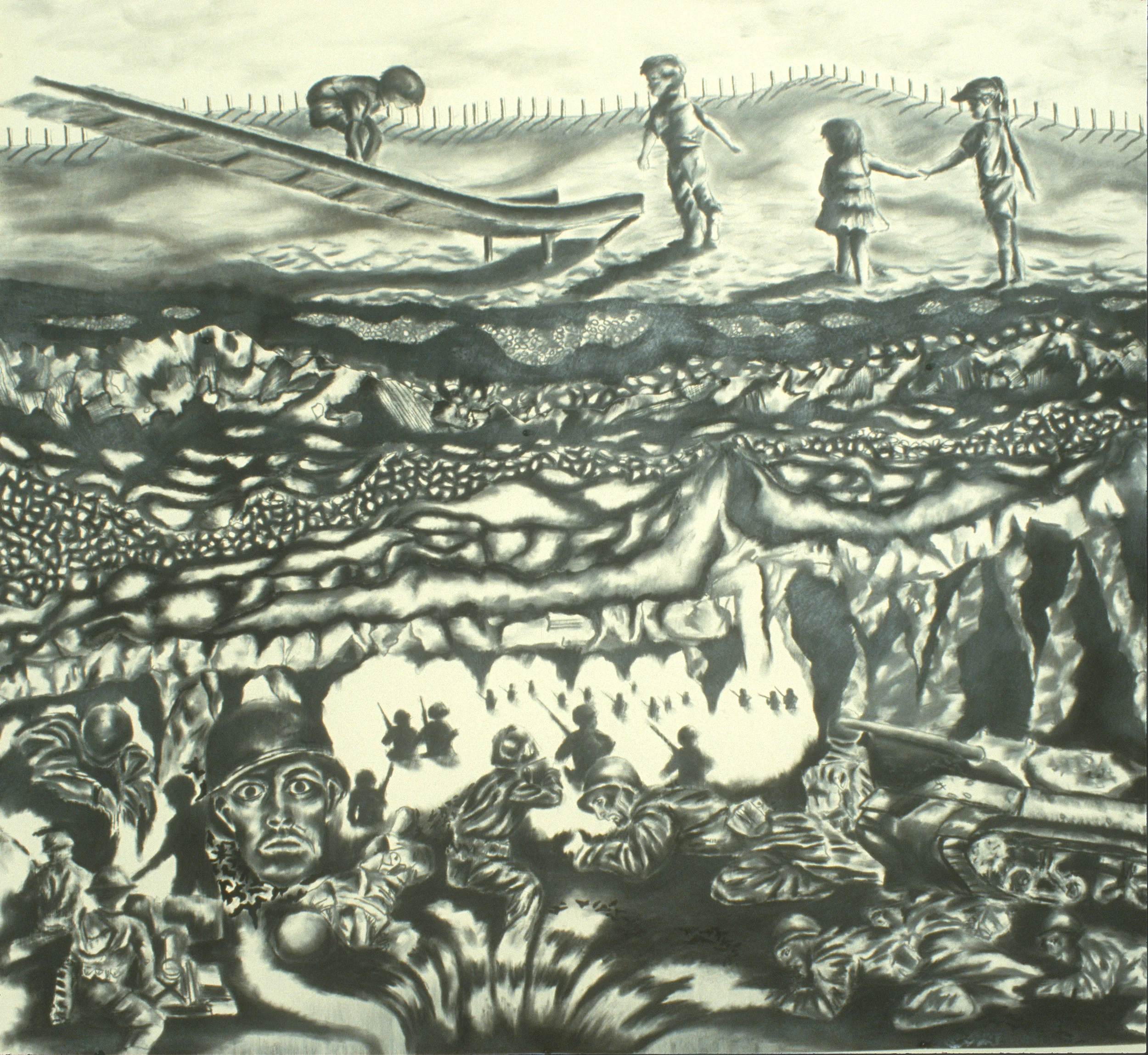 HIDE AND SEEK, charcoal on paper, 80" x 9'